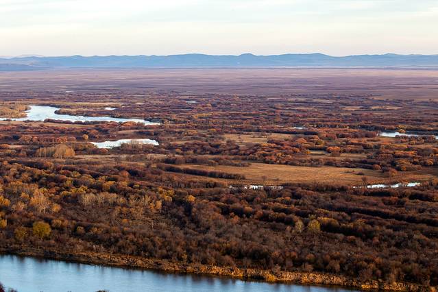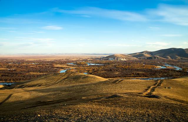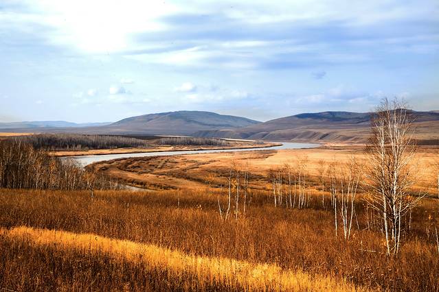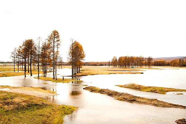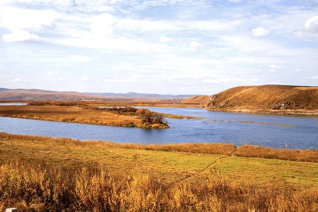到达额尔古纳湿地已经将近六点,此时天色已暗,想着夕阳下昏黄的光线湿地应该更美丽,马上购买景区票进入。额尔古纳湿地景区位于额尔古纳市郊,是中国目前保持原状态最完好、面积最大的湿地,被誉为"亚洲第一湿地"。这里地形平缓开阔,额尔古纳河的支流根河从这里蜿蜒流过,形成了壮观秀丽的河流湿地景观。
