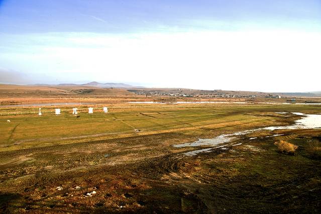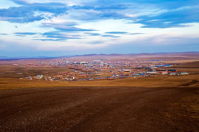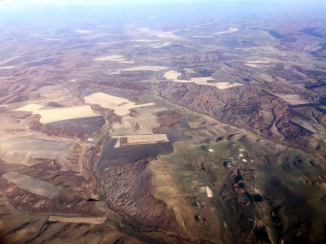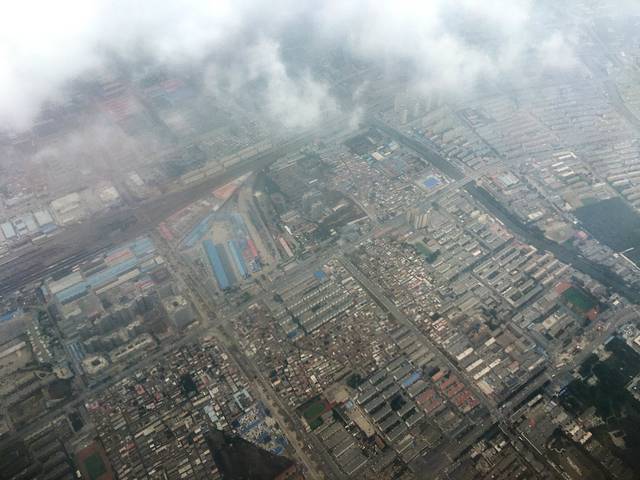 从空中看呼和浩特的绝大多数房屋像排兵布阵一般,一排排规划,而离开市区一路上都是茫茫黄土与草地的交杂组合。