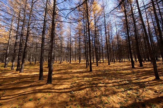 离开阿尔山景区进入到柴河源门区,道路的两侧并无多大的新奇,蜿蜒的水泥道路依山而行,过往的车辆已是极少,在行驶至一段平缓的道路发现了一片整齐的松树林,只觉得眼前一亮便下车观赏,停留的车辆只有两三辆。