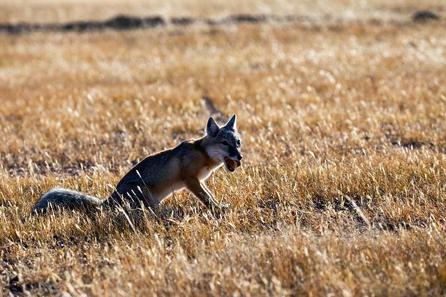 最惊喜的莫过于在路边发现的野生狐狸,或许是见多了人,下车离它十来米也并不惧怕,随身携带的零食用来引诱它也容易上钩,把吃的挖坑埋在土里又被我挖出来,看着它又怕又馋也真是笑死人,不过玩归玩我还是有点怕它突然蹿过来,拍的同时时刻不忘保持安全距离。