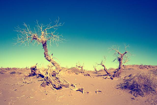 胡杨是生长在沙漠的唯一乔木树种,且十分珍贵,可以和有“植物活化石”之称的银杏树相提并论,它的生长总是和凤凰与鲜血紧密相连,这也是一个多变的树种,春夏为绿色,深秋为黄色,冬天为红色。它曾经广泛分布于中国西部的温带暖温带地区,新疆库车千佛洞、甘肃敦煌铁匠沟、山西平隆等地;如今,除了柴达木盆地、河西走廊、内蒙古阿拉善一些流入沙漠的河流两岸还可见到少量的胡杨,但要数最为美丽,最为壮观,就是额济纳旗胡杨林了。