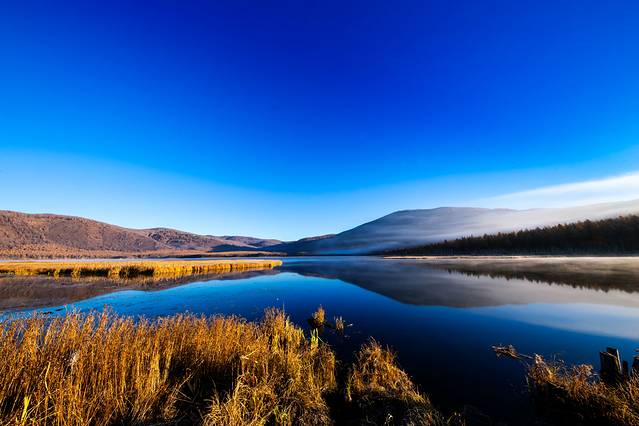 它相比于其他湖泊最好的一点就是湖边有许多的硬地可以让你贴近湖边,成片水烛、湖边朽木、水中倒影等每一个局部都是一副值得拍下的画面,尤其是日落时分本就金黄的植被在夕阳下变的越加和煦,给人特别安静的氛围,看着就是美,更不要说用单反记录了。