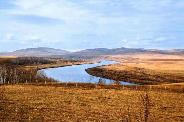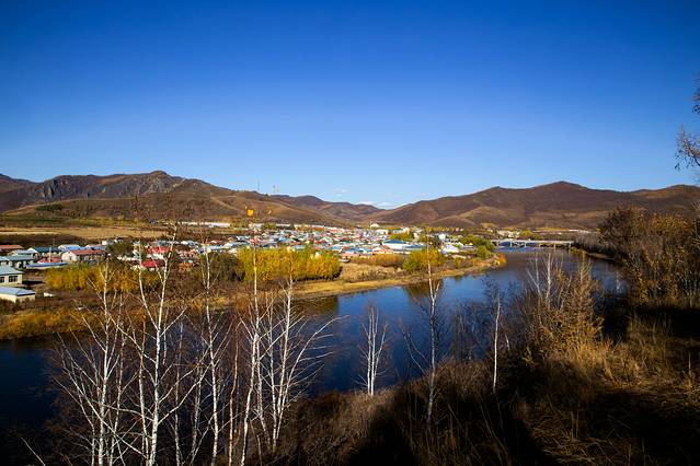 月亮小镇因其河道如月牙而得名,站在高处俯瞰,此处背靠山,前有河流环绕,在群山环绕中尽得一片宁静,属于度假休闲的不错之地。柴河镇到达海拉尔有两条路,一左一右,右边为直接上高速往扎兰屯市方向绕一圈高速回到海拉尔,左边属于林间县道,沿着绰尔河途径绰河源镇到达海拉尔,此时道路有一段在维修,考虑到时间上差不多,林间也许可以看到不一样的景致便选择了难走的小路。