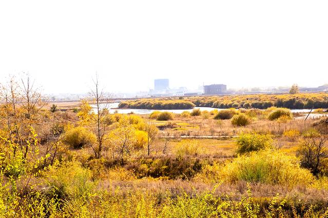 日出将山下的湿地照亮,阳光和煦,本就金黄的树叶越加的绚烂多彩,河面闪着莹莹蓝光,一切是如此的和谐,较之昨日傍晚的灰蒙,今晨就让人越加喜爱。