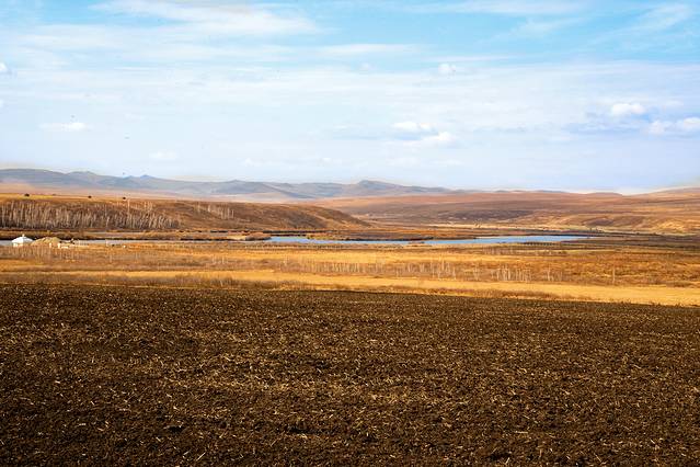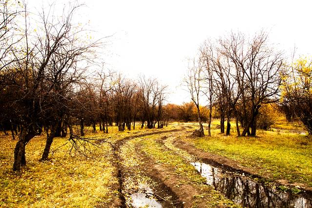 刚出额尔古纳就在道路上发现一片湿地,从远处看特别的好看,按我一贯的作风既然看到了就要想办法进入。车子沿着泥泞的道路缓慢行驶,时刻还在担心底盘不高的轿车是否可以驶入,还好道路都是碎石子铺成的农用路,车子安全驶入。