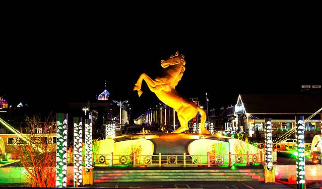 夜晚十点应该在内蒙来说基本算很晚了,更不要说靠近俄罗斯的室韦,广场的灯光还是依亮着,与对面俄罗斯的小镇行成了鲜明的对比,这也有就是旅游所带来的经济效应。