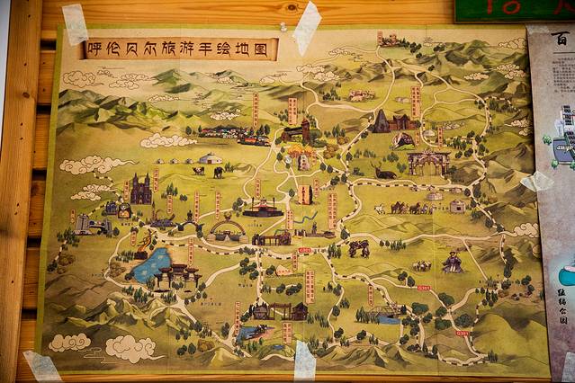 因为刚到海拉尔还是一顿迷糊,也不知道在哪里住下吃住、租车比较方便,就打的跟师傅说放到相对比较好的地方。机场到达市区并不是很远,费用大致20元,而路上可以看到海拉尔区作为旅游城市的中心建设的非常的不错,道路宽,高楼大夏也不少,尤其是伊敏河两边更是美。因为急着找住与租车,都未曾去记录下眼中的海拉尔。的士师傅将我们放到比较方便的古城北街附近,因为太多行李,就近找了一家青旅,装修还不错,40元一位的大通铺,因为淡季我一个人住,倒也没觉得什么,毕竟逗留一晚,明天就正是踏上旅程。