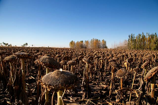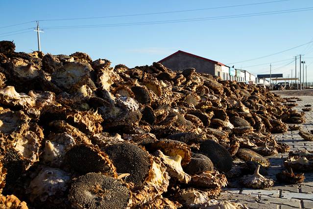 刚驶入鄂尔多斯境内看到的并不是羊,而是一片片的葵花籽地,一个个成熟的花盘被农民砍下插在枝干上自然风干,各个饱满如圆盘,如同一片向日葵王国,偌大的瓜子地无人管辖,我想在这里瓜子也不是什么稀罕物,农民也不怕过往的路人采摘一二吧,摘下一朵里面的瓜子饱满,自然风干的瓜子有一种清香,有别于翻炒后的脆香。再到居民区,每家每户门前堆满了打落好的瓜子,诧异的同时百度了一番,原来此地是中国有名的葵花籽之乡,让我从鄂尔多斯的羊毛产地又多了一层认识,待到盛夏时节,这里必将是一片花海王国。旅行的意义也在于此,它有别于旅游的侧重游玩,旅行更多的在于旅途中对过程的思考与挑战,体验不同于固定的生活模式,细细品味观察,乃至感悟。