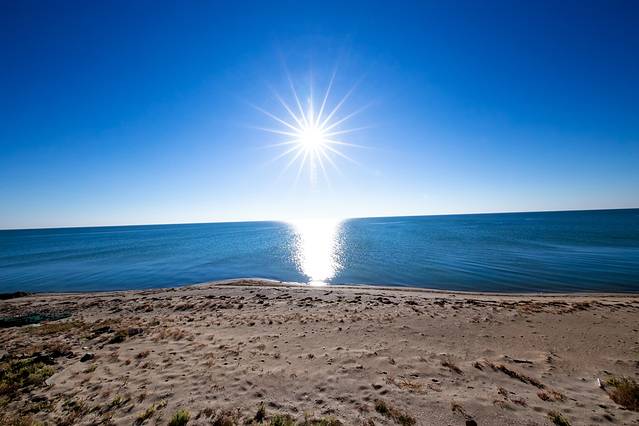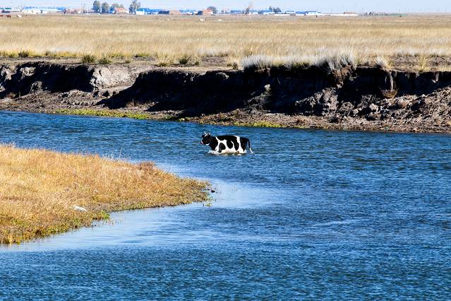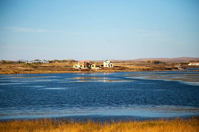早上起床油站还是没有油,也就只能走最近的道路前往阿尔山。通往贝尔湖的道路说是乡道,可基本都被草地所覆盖,只能隐隐约约的看到车辆行驶的痕迹,还好道路没错半小时左右就走上贝尔湖边的泥泞道路。因为属于中蒙界湖,基本都被铁丝网围住,只有当地的渔民在内捕捞,因为大脑的一时抽搐,猛然间就沿着道路开进类似渔场队驻地,才在湖边拍了这张照片。贝尔湖说景点它并没有什么,诺大的湖一望无际,湖面上只有少许的渔船在捕捞两岸向两边延伸看不到头。可它给人的感觉比呼伦湖来的舒畅,湖水也更加的清澈,太阳在湖面形成一道银白的光带,远方,湖水绵延不绝与天在地平线交会,形成一色。