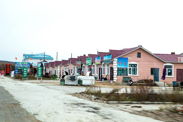 经过不久的路程可以到达莫尔道嘎镇,作为这片原始森林中难得的城镇,从各家门前的外观看这里应该属于一个木材加工地,生活在这里的人并不是很多,也许此刻很多人为了避寒开始去往别处。这里的配套设施不算完整,可以居住的宾馆不多,卖山货的远比吃饭住宿要来的多,路上看到为数不多的自驾者基本也都在这里稍作停留后继续前行。
