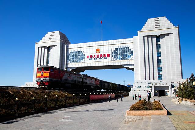 进入的时间刚刚好,正巧遇到火车驶入国门,这个场景也是许多摄影者抓拍的素材,行驶的火车与屹立的国门,湛蓝的天空,好一个国门一景。