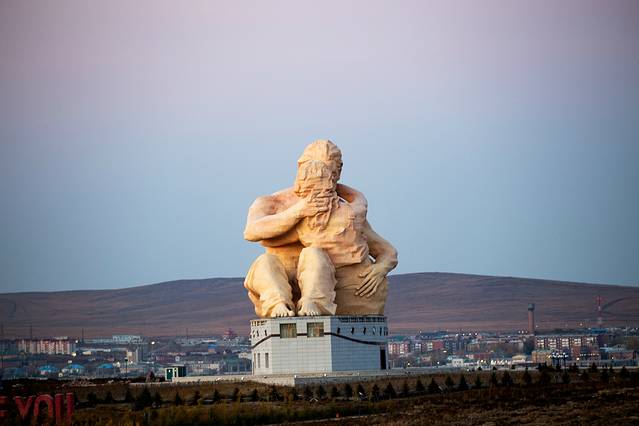 追逐日落,想爬上山坡去拍摄,误打误撞经过一个小旅游区,也不知道建筑物得含义,但大致也是讲述一段感人得爱情故事吧。