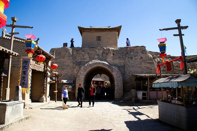 进入影视城首当其冲的是用土夯起来的城墙,二、三百米长倒是给人西北城镇应有的味道,清晰可见的土层,一层层顺势而上,历史沉淀在这里,这里有着中国的历史记忆。