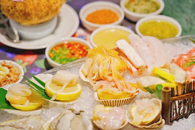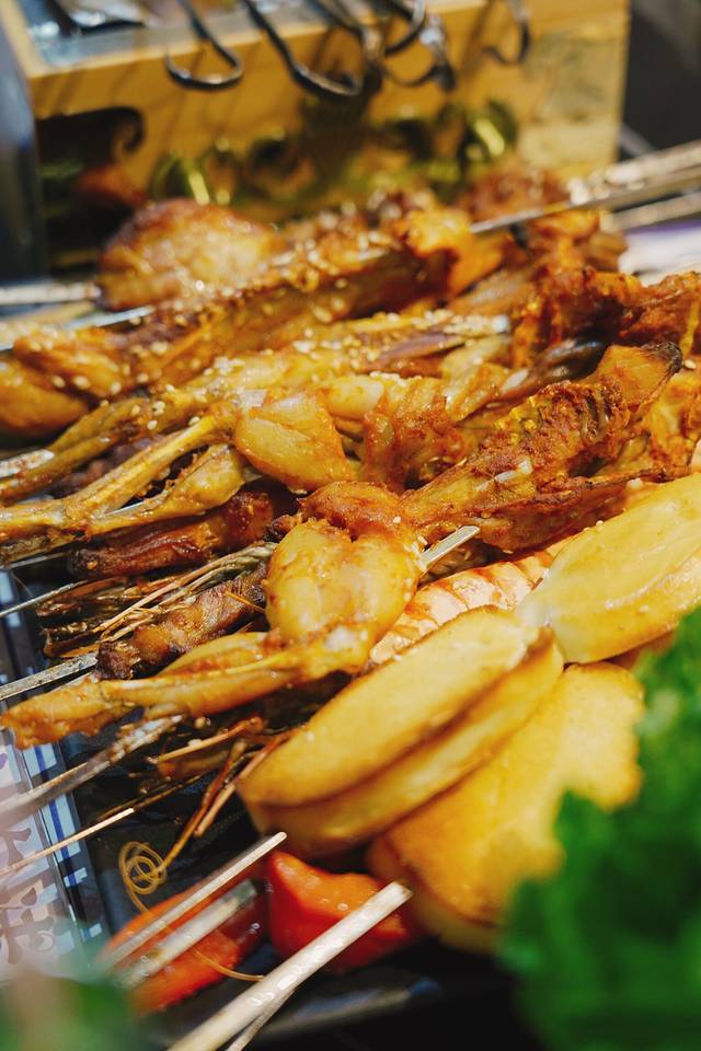 还有很多其他的海鲜,比如扇贝、鲜虾、蛤蜊、鱿鱼等等,食材是看得到的新鲜,都是可以自助选择的,吃多少拿多少,这里除了海鲜还有值得推荐的就是烤肉了,五花肉烤起来非常香,烤好后用生菜叶包着吃特别饱肚子,还有烤翅做的也超级入味,写到这里我都饿了,好想再去胡吃海喝一顿。