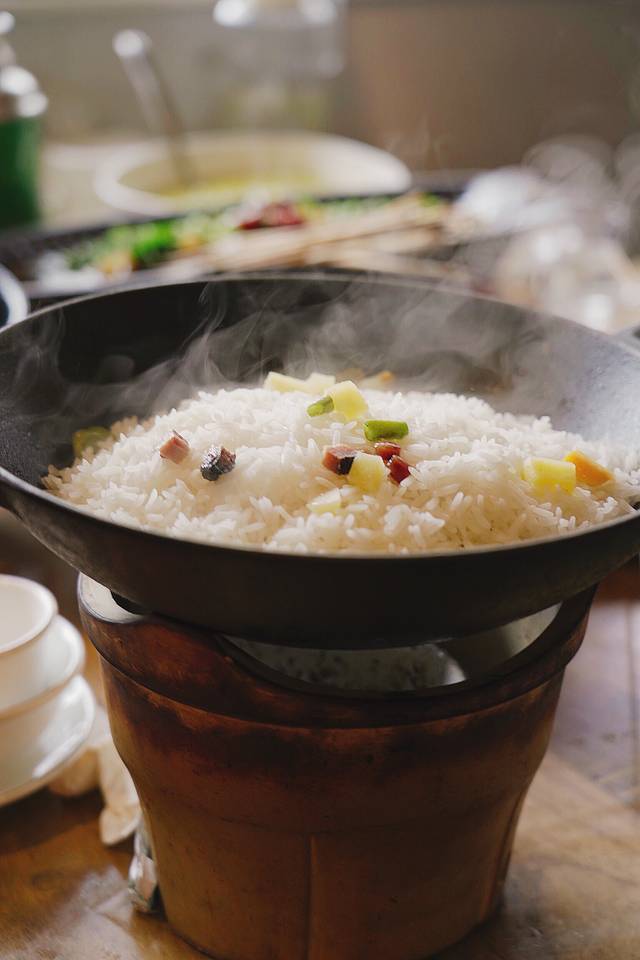米饭端上来的时候冒着热气,松软的米粒颗颗饱满,香味十足,我的视线都被这碗孔干饭所吸引住了,拍了好些照片,因为这碗饭给了我一种家的感觉。