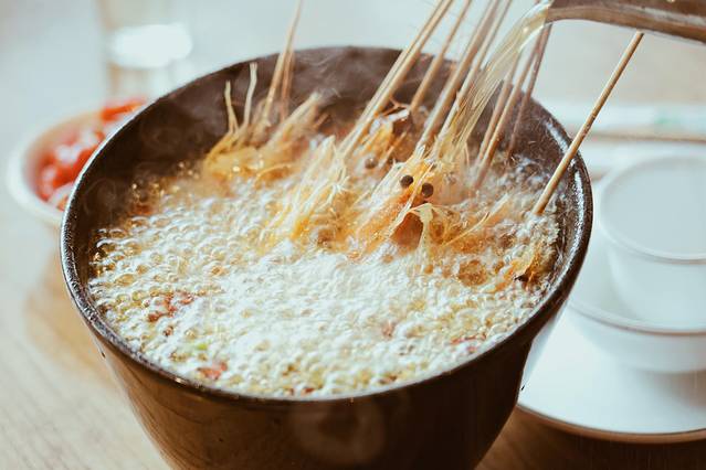 等我们拍够了小姐姐就开始帮我们把海鲜下入火锅,后面的事就不用我们操心了,只用负责吃就好,这里我要夸一夸小姐姐的剥虾技术了,每个虾都剥得完完整整,剥得又好又快,我由衷的佩服,服务员小姐姐说这是他们必须掌握的一项技能。给他们点个大大的赞,服务不愧是排行榜第一!