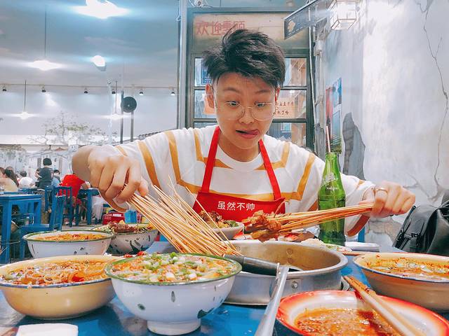 整个店面的装修风格很有八十年代的感觉,就好像坐在马路边上一样,墙上有很多老成都街边的景象,桌子和凳子也是木质的,跟小时候在街边吃烧烤的感觉特别像,每到饭点时分熙熙攘攘的人群聚集到一块,热闹非凡,真不愧是最成都老味道呀!