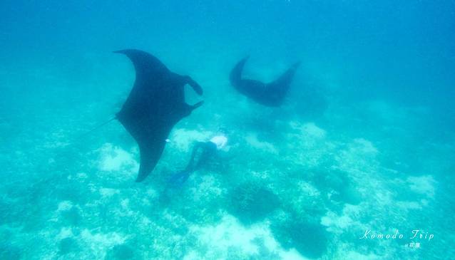 科莫多 有一处看到魔鬼鱼几率超高的浮潜点,一般都可以看到2-3只,季节合适运气好的情况下会看到manta风暴,我们去的那天浪比较大天气其实不算太好,但还是很幸运的看到了四五只manta。