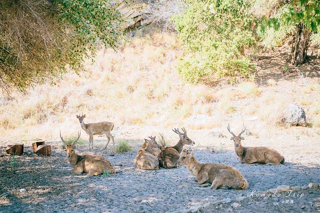 拍完 科莫多 龙后,回头看到远处趴着几只鹿,它们在树荫中显得格外悠闲。