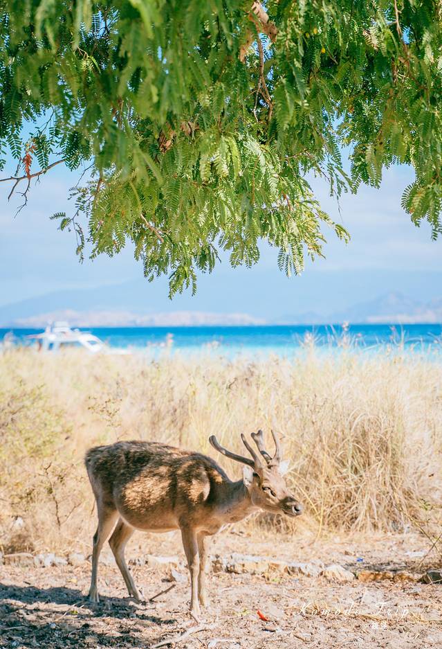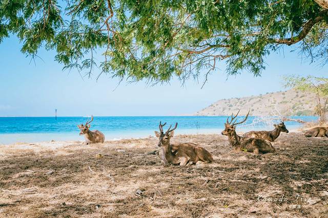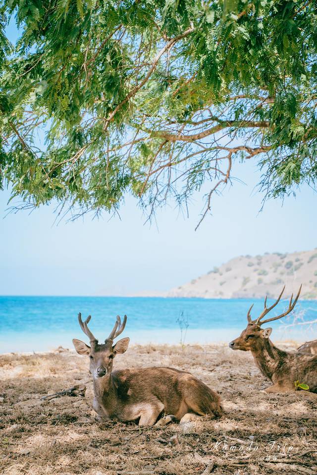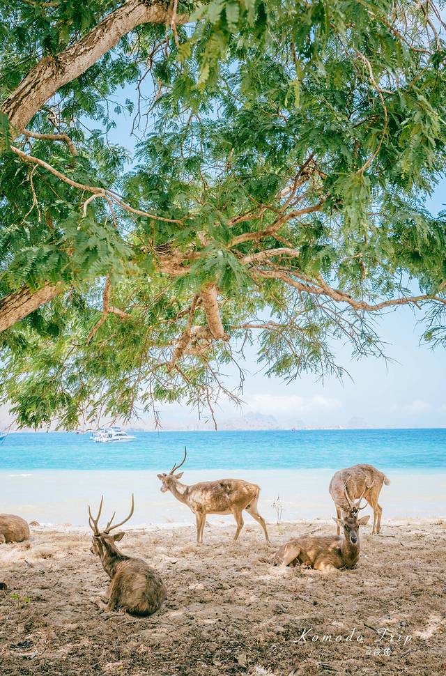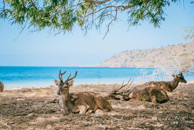 不远处的海水湛蓝,近处绿树成荫,树影来回摇晃着,鹿儿懒懒的趴着,这画面竟也十分美妙。只是这鹿的命运并不是看着的这般岁月静好,它们似乎最终将会成为 科莫多 龙的腹中之物。