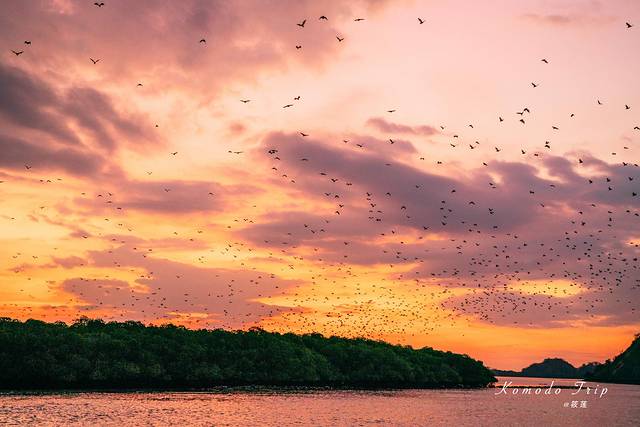 🌟kalong岛:就是看万蝠出巢的地方,大群的蝙蝠群居住于此,每天日落以后出林飞往外面觅食,天亮以前又会回到此地,如此循环往复,所以这样的景观理论上讲是每一天都可以看到的。