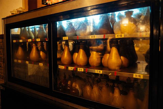酒香菜正,一口酒来一口菜,一边小酌一杯香甜的玫瑰酒,感受着花香和酒香在嘴里相互交融,实在是美哉。装酒的瓶子太古风了,给我一种我在演电视剧的感觉,戏精上身。我马上摆饮酒姿势,让莫莫给我拍。