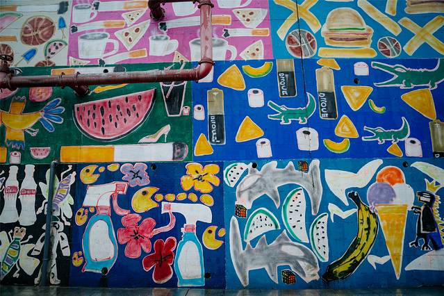五颜六色的画面、色彩拼块加上超有感觉的水管,随便一拍都超级带感。而且好像不止这么一条涂鸦墙哦,转了转好像一共发现三条这样的涂鸦街,都在宜家附近的,建议多逛逛。