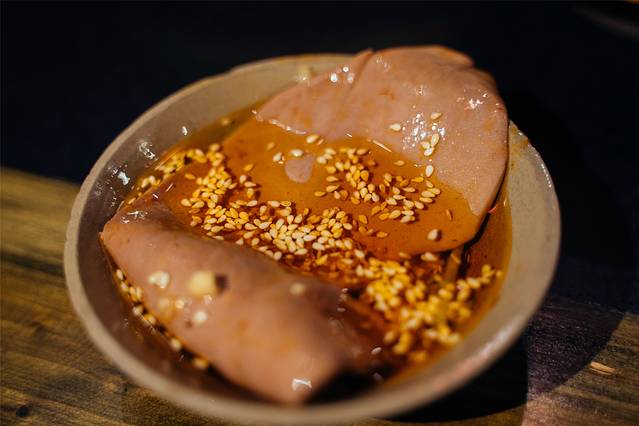 「屠场鲜毛肚」鲜毛肚品质有保障,新鲜看得见,火猛的时候下下去,七上八下就把它捞起来吧,不要烫老了。脆嫩。重庆的毛肚给我的感觉都很棒,至今还没有踩雷。