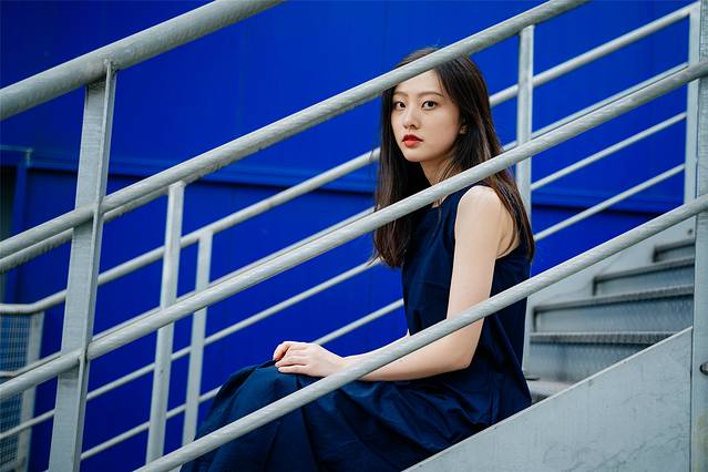 蓝色的纯色裙(单色)不会和背景抢色,更显高级感~建议可以不要穿太花。以纯色为主。