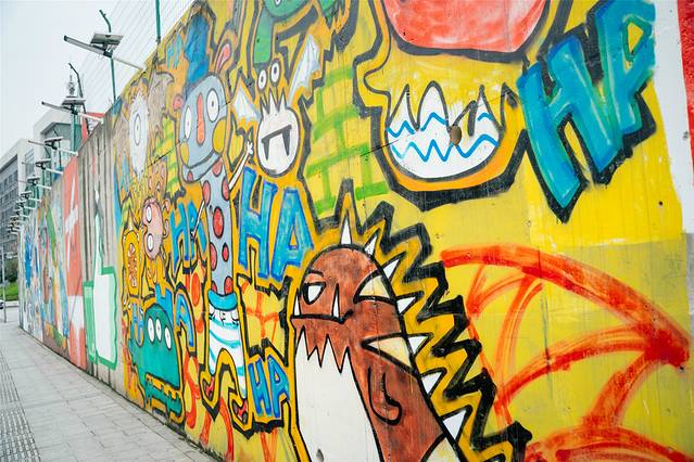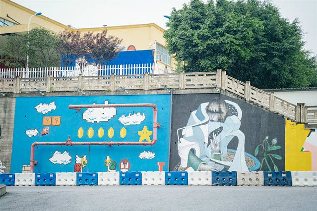 从金渝轻轨站出来往金山意库方向走,就能看到这一条长长的涂鸦墙,🎈画面饱和度高,各种漫画超级好看。