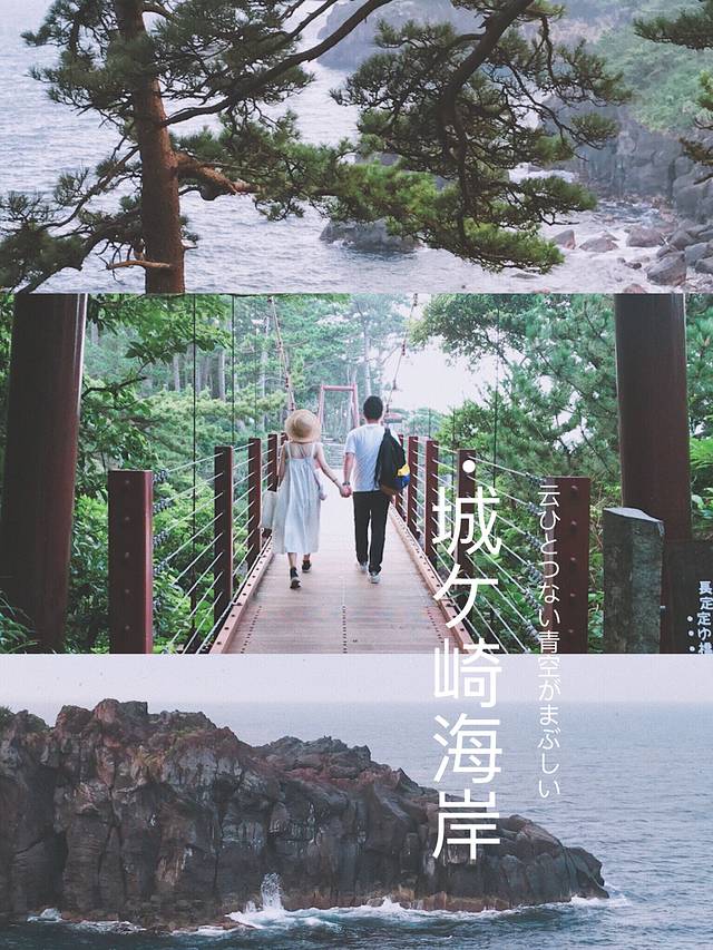 城崎海岸是大室山喷发的熔岩,流入大海所形成的断崖。景观美丽又动人,还可以体验惊险刺激的吊桥~