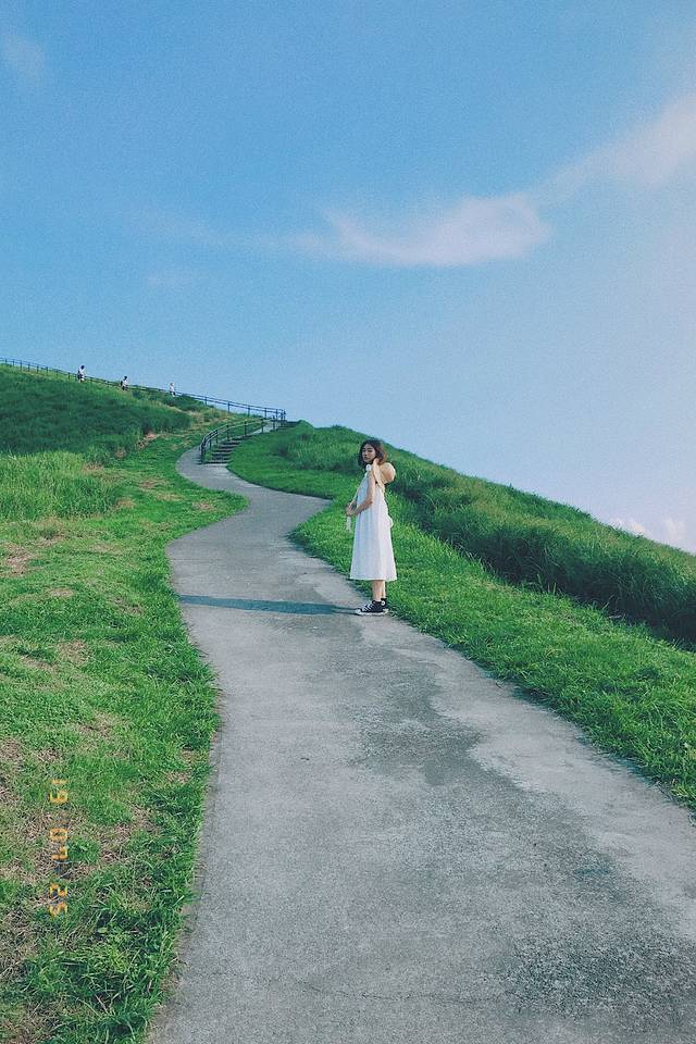 绿油油的一片,有一条小路贯穿其中,走在这条路上,处于高位看着沿途的风景,感觉与云层并肩散步~超级适合拍照!