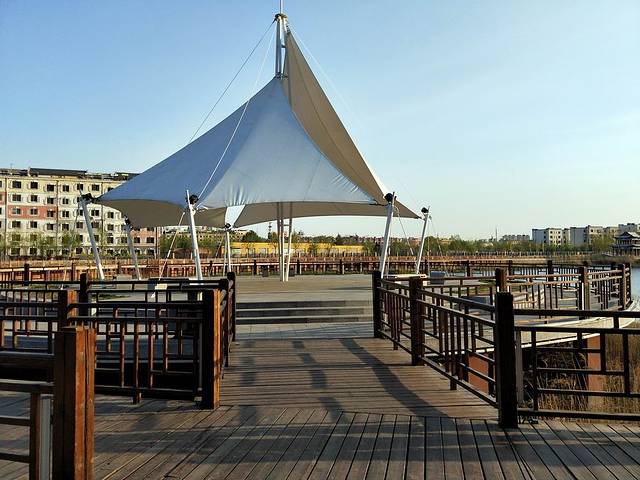 百态的藤树长廊、设计独特的环湖木桥,环抱着盘锦唯一一个露天浴场。