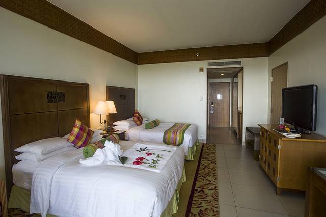 房间有38平米,入住的是豪华海景房。走到阳台上可以看到无敌海景,房间设施齐全,从酒店走到沙滩差不多要5分钟左右,非常的近。