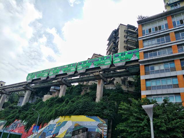 这一站待的时间不久,随便拍了几张轻轨穿楼和江景,就去了下一站。