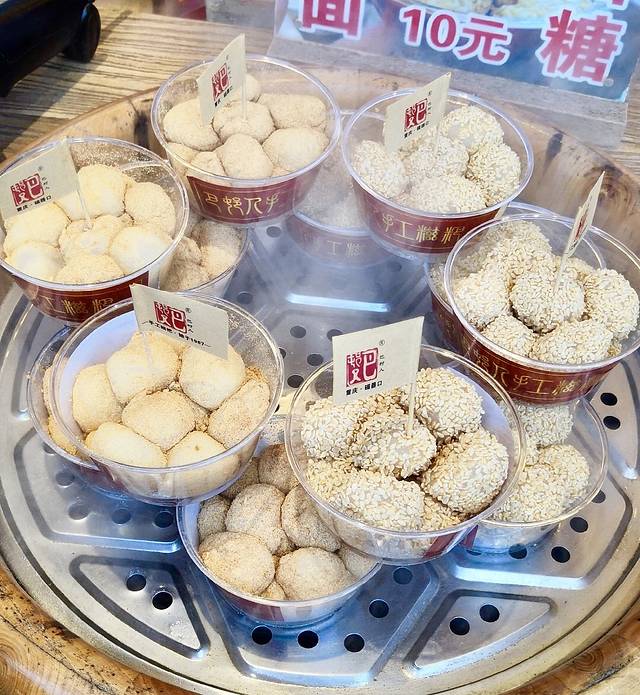 我们先要了两碗酸辣粉填肚子,Q弹够味,确实好吃,出去又买了糯叽叽的糍粑和芒果杯,看到很多人在排队买麻花,本来想带一些回去给舍友吃,最后我俩都实在懒得排队也就算了。