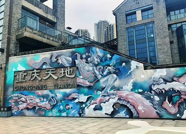 从李子坝坐公交过来,远远就能看见涂鸦墙上的重庆天地logo,张扬有个性。说是商业园区,其实更像是一个文创园,绝对是文艺青年喜欢的去处。