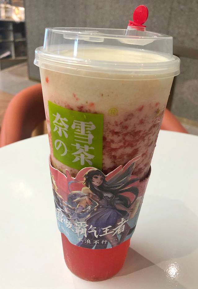 然而作为一个合格的肥宅,我第一眼就看到了奈雪,门头装修很符合重庆天地的调性,而且这也是少有的不排队的奈雪了,它家的芝士草莓我真的