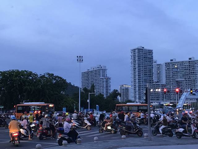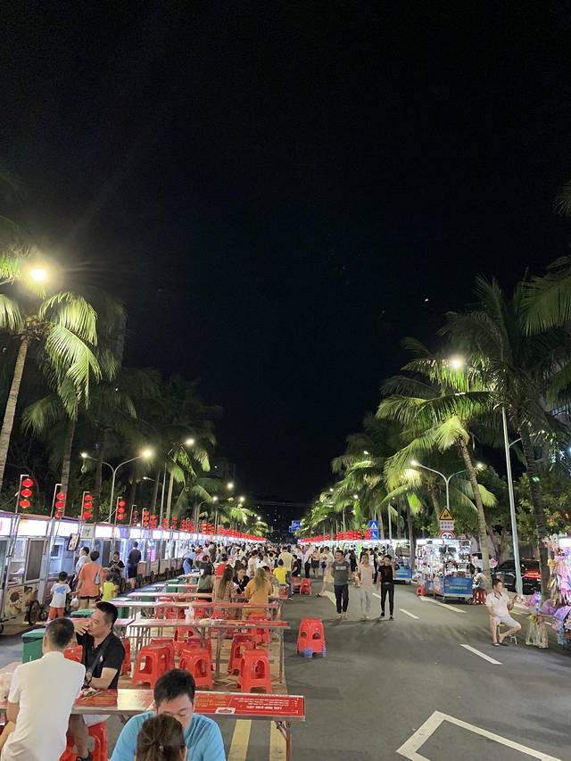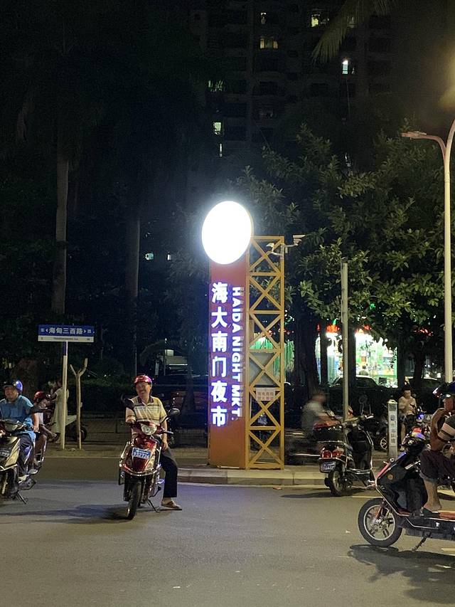 之后步行去南大夜市。海南是有共享单车的,不过满大街都是骑摩托的速度挺快,我车技不行不太敢骑,南大夜市到半夜12点,夜市晚上11点有的商铺就开始收摊了。这边公交车一般晚上10:30左右末班车,建议晚上10:30之前往回走比较合适。