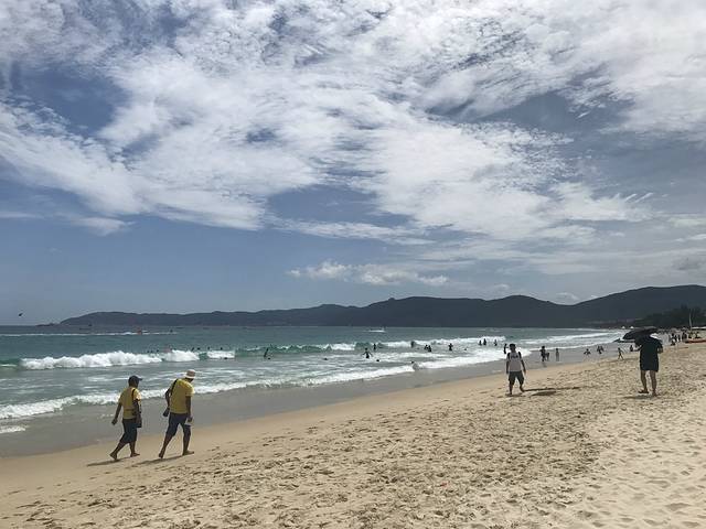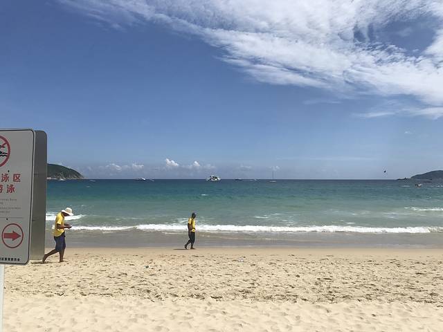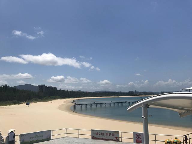 中午退房出发去亚龙湾。亚龙湾网上可以看到不少吐槽的,犹豫了下,还是去了。有说亚龙湾海滩被酒店占了,高消费,坑什么的。我去的时候完全没有,停车一下午5元,沙滩很大很长,游泳区域有救生员,免费。遮阳伞躺椅,免费。更衣室免费。冲澡收费。