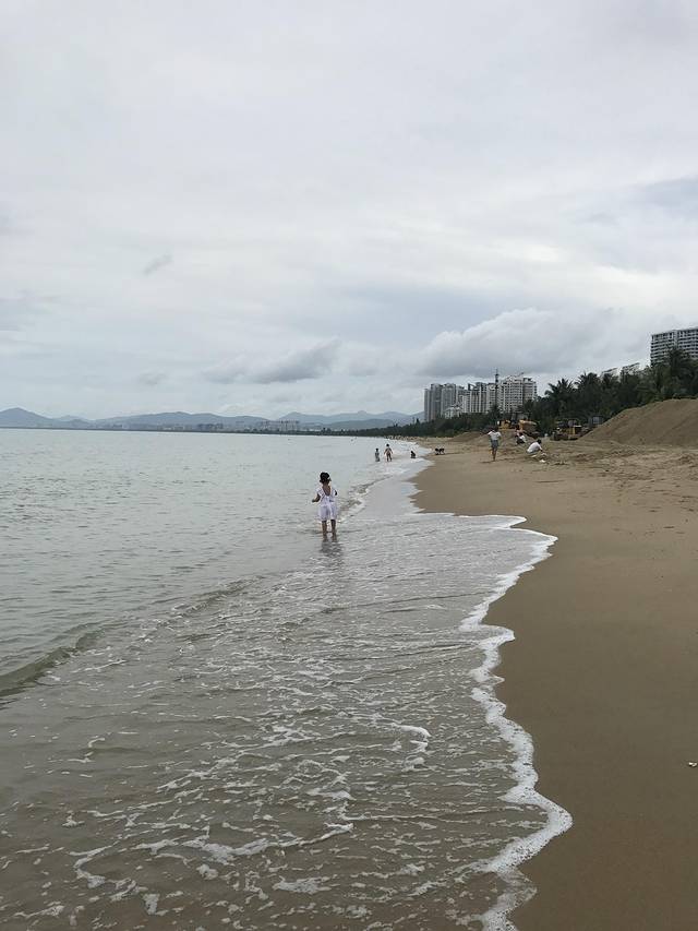 酒店过条马路就是三亚湾海滨浴场,天气不好,沙滩有拖拉机在修,海不是很干净,浪不大,这里可以随便游泳随便玩,有厕所换衣服,有冲脚的地方。没有救生员,游泳要自己注意安全