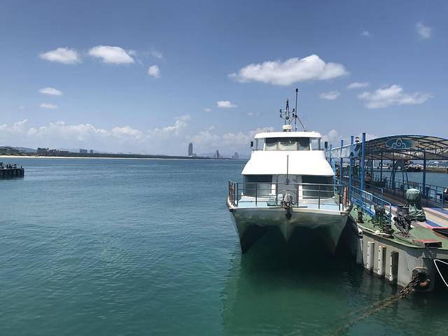 启程去蜈支洲岛,这个季节往返船8:30-6:30,船票加门票一人133,旺季会贵。中午一点多到的,上传去程人不多,5点多返程开始排队上船了,我们排了半个小时吧,晒化了。岛不大,一天足够。