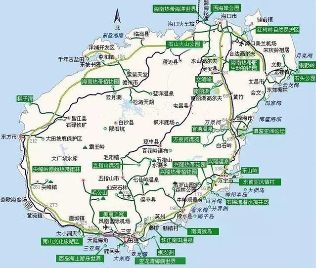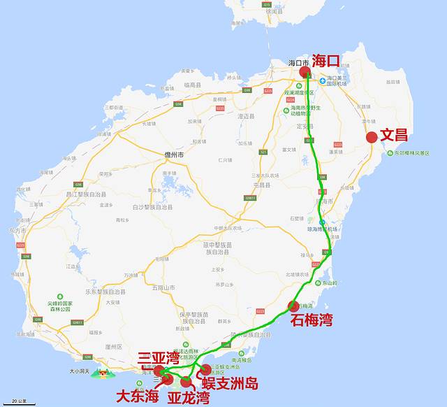大致画了下自驾路线。海口到三亚走东线290公里左右
