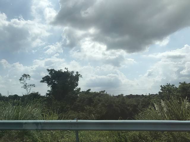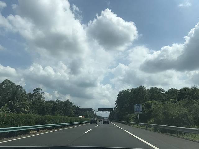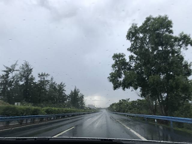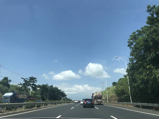 海南东部高速修的比较早,只有两条车道,大车比较多。天气炎热,自驾要注意胎压。