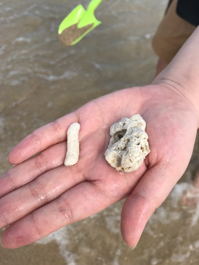 沙子里有小贝壳珊瑚碎片,拍完照想着给扔回去