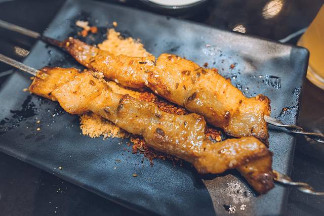 分量很足的肉绝对是必须要推荐大家来吃的,肉香而不腻,肥瘦适当,再喝一口啤酒,口感爽冽,老板,再来10串!