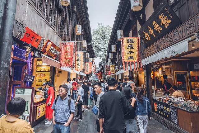 井巷子里500米长的历代砖文化和500米长民俗留影强,承担起了再现老成都情景的重任,空气中的香味是街头成都小吃发出的邀请,物美价廉。