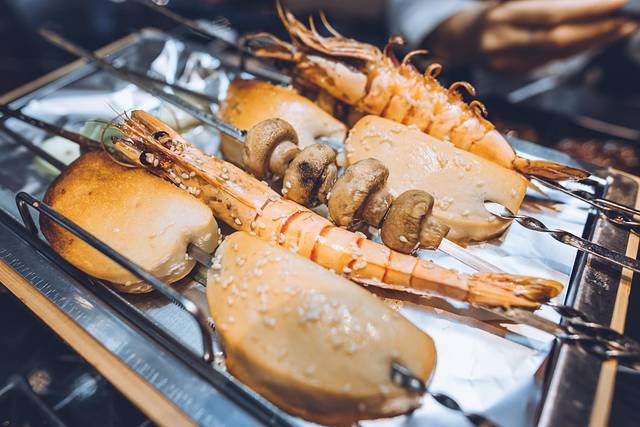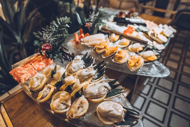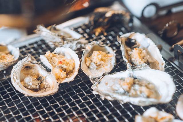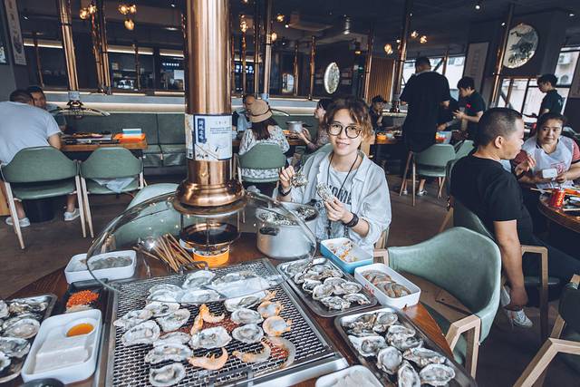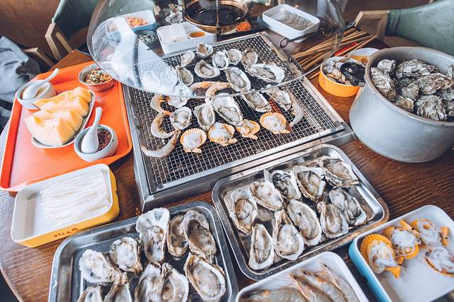 毕竟是这里的主角,大家都是冲着生蚝自助来的,取餐区的生蚝占据了半壁江山。新鲜的生蚝在烤架上随着温度一点点地变化,呈现出诱人的光泽,蒜蓉是特制的,自己动手上料的蒜蓉生蚝非常香,还有清蒸生蚝,高压锅蒸制,店员会主动提出帮客人开生蚝,服务到位。