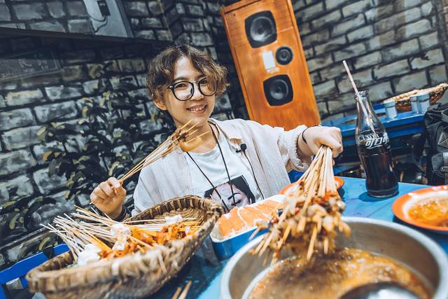 在得劲儿焖烤肉串,成都是大口肉大口酒的得劲儿生活。