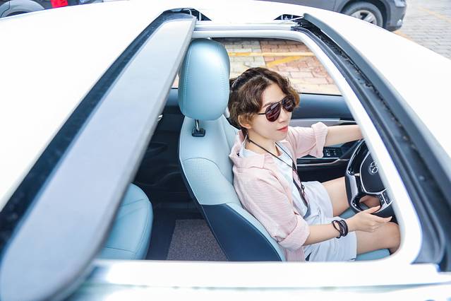 这款白色的EU5 R600外观简洁大气,拥有着轿跑式的风采。我去成都的日子里天公作美,打开电动天窗,享受阳光与风,不管在哪里,我都是最酷的那个girl~